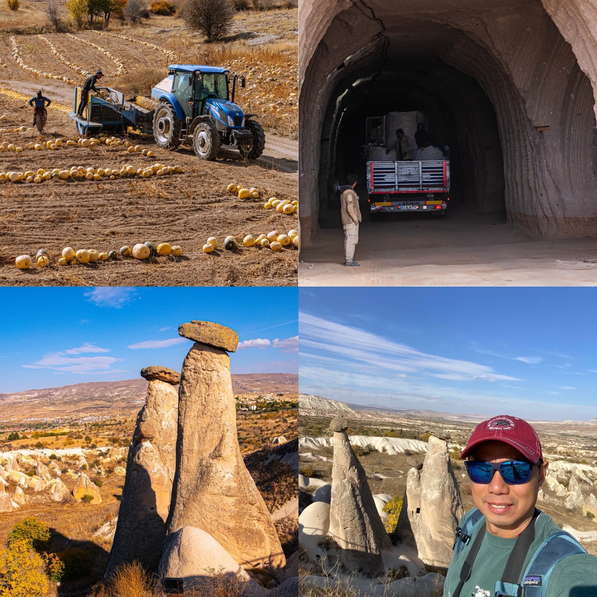 On both my way to Cappadocia and our trips, I asked Irfan if pumpkins are big crops in Turkey as I see them a lot. He said yes, it is made to some sort of native delicacies. Its surprising to see that these pumpkins are different to traditional orange pumpkins I see during fall in the US; they resemble more of a watermelon. On our ride to Caravansite, Both roads sides were farms of pumpkins. Irfan must have read my mind and we parked our car, both got off, looked and watched them while they harvests.