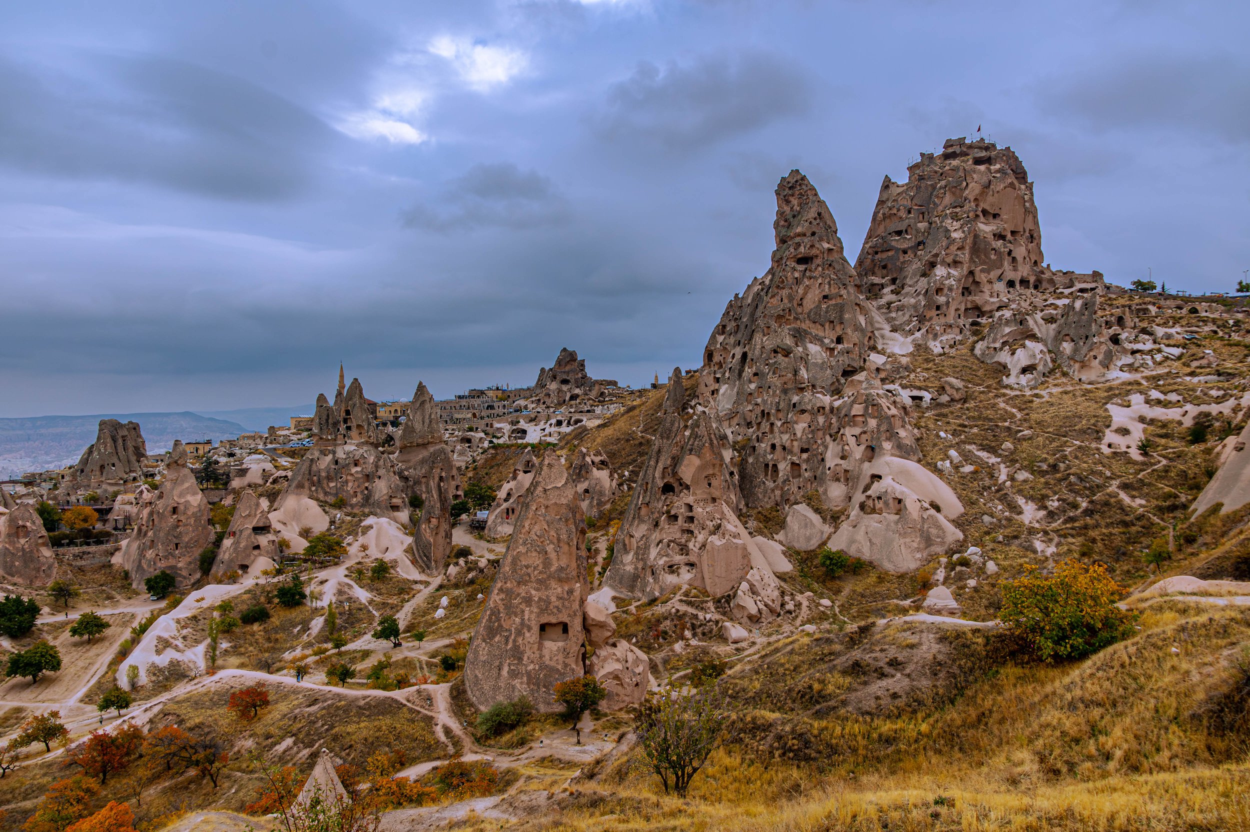 An overlook of the Fairy Chimneys of the Uchisar Valley; straight out of a fairytale book.