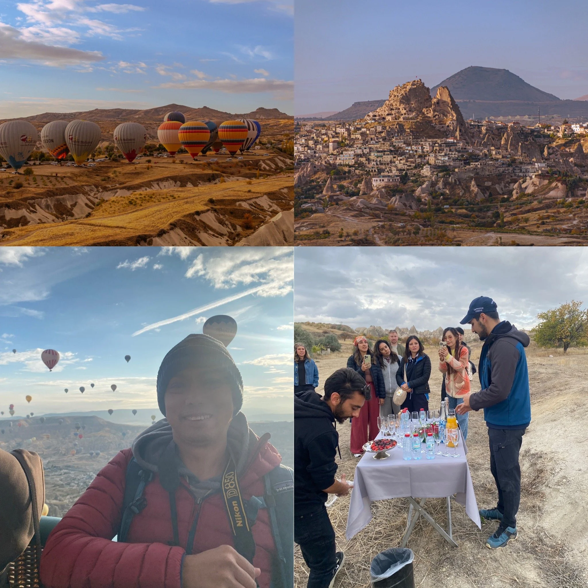 Top L-R: hot air balloon prepping for take off; the view of Uchisar Castle from my balloon;